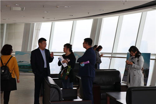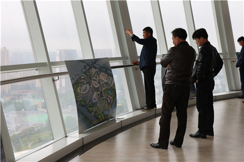隨后,郇會長帶領考察團登上市文化藝術中心觀光塔,一覽濰坊市貌。