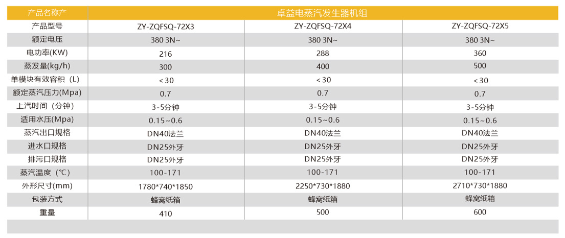 蒸汽量:400kg/h、電功率:288KW 、尺寸:2250*730*1880mm 蒸汽壓力:0.7MPa
